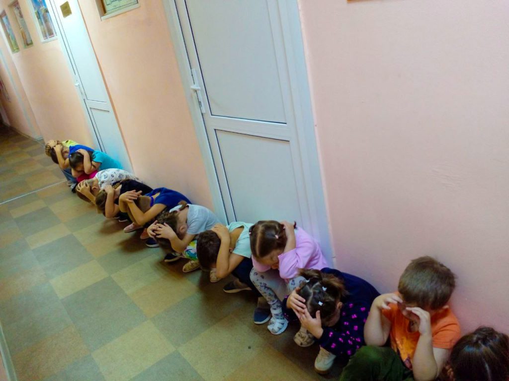 Дети практиковались в действиях при получении сигнала оповещения «ВНИМАНИЕ ВСЕМ!» и узнали, что в случае угрозы необходимо покинуть опасную зону и срочно спрятаться в безопасное место.