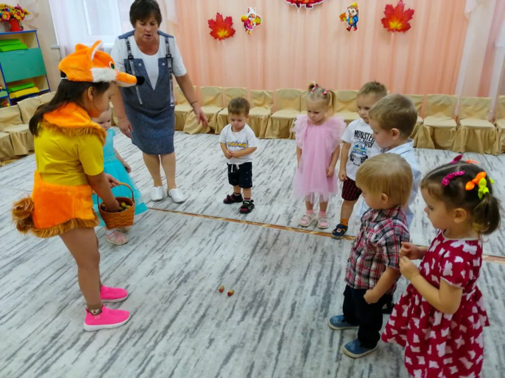 В гости к малышам пришла настоящая осенняя красавица — Лисичка которая принесла с собой весёлые игры и конкурсы.