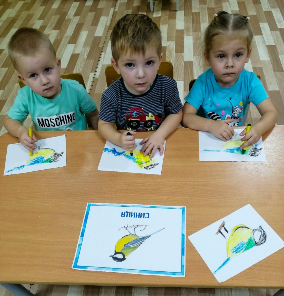 Они клеили изображение птичек, а затем пальчиками рисовали корм для них. Такая деятельность способствовала развитию мелкой моторики, творческих навыков и формированию представлений о природе и птицах.